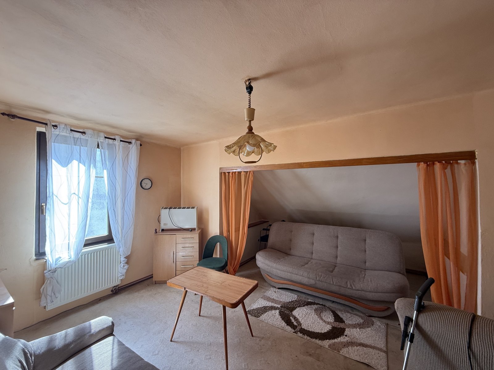 obytný prostor, který je v současnosti rozdělen na šatnu a druhý pokoj.