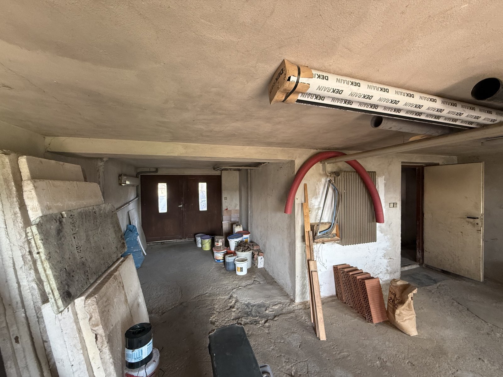 K domu náleží garáž, kotelna, prádelna a skladovací prostory, stejně