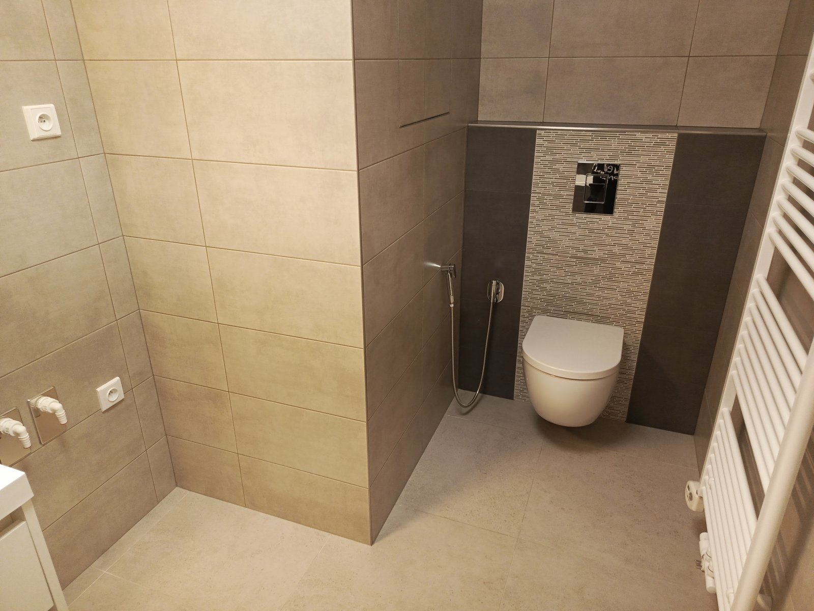 V celém bytě je podlahové vytápěí. Byt je 1 rok starý, aktuálně