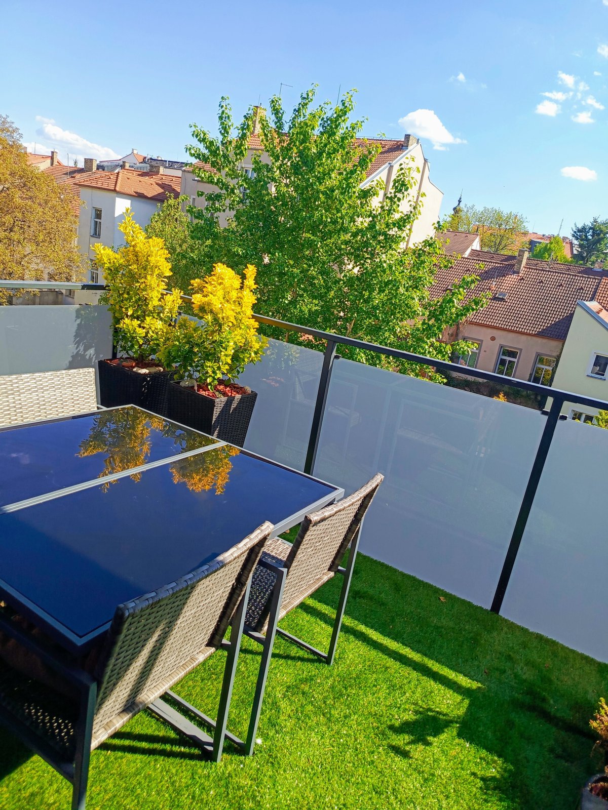 Z obýváku je vstup na krásnou terasu o výměře 7,27 m2. Byt je světlý,