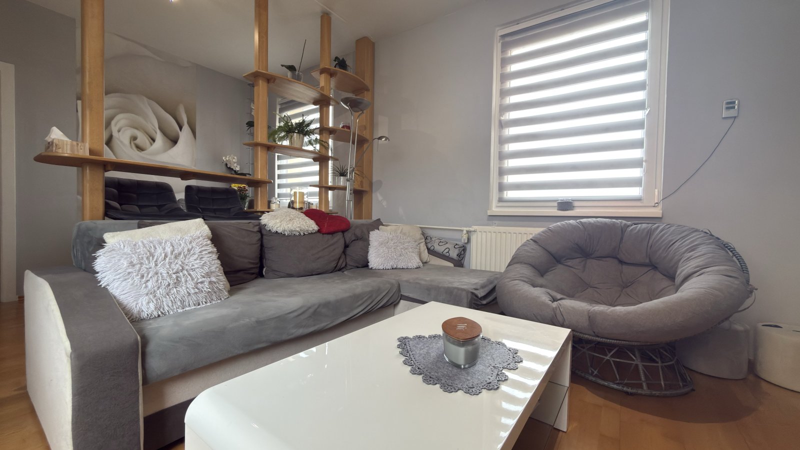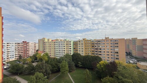 je umístěný v 7. patře panelového domu s výtahem a orientací na